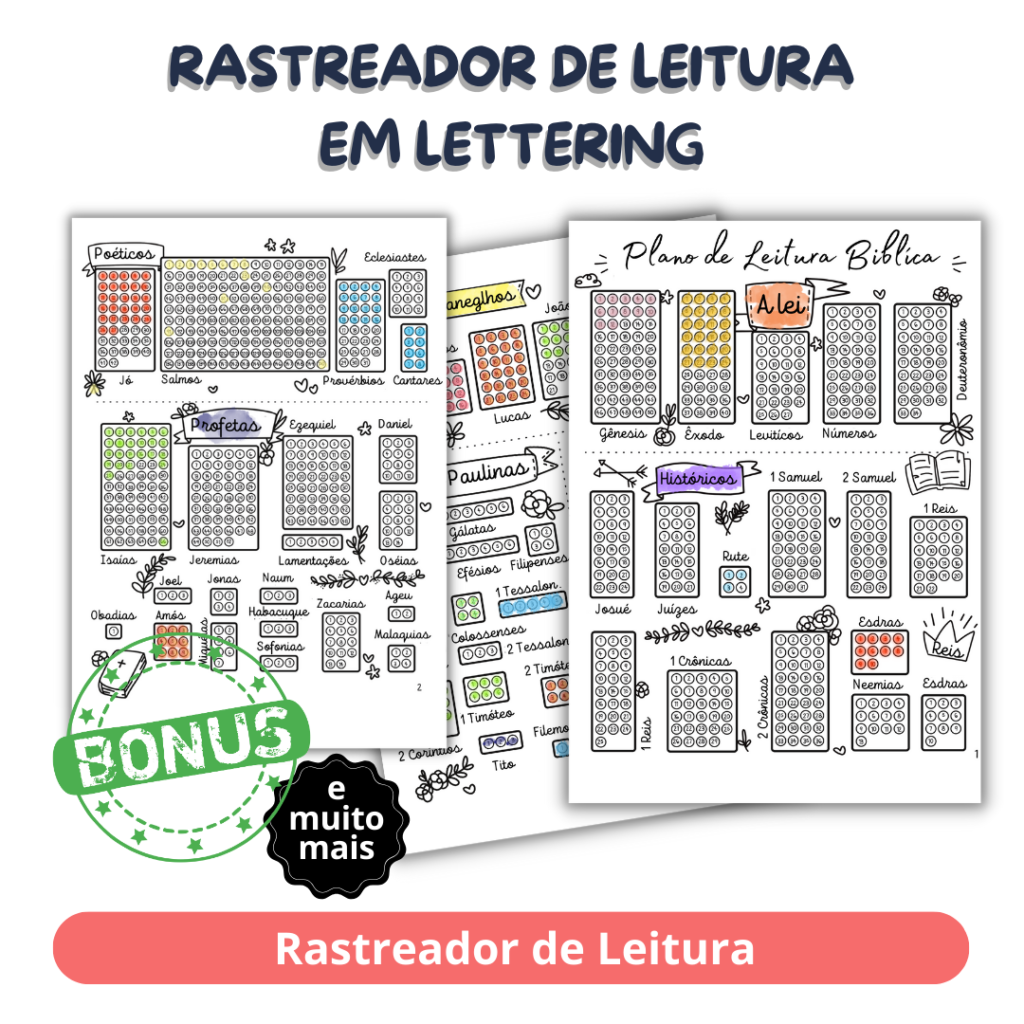 Apresentamos o Rastreador de Leitura em Lettering: à medida que avança, você colore, criando um mosaico vibrante de sua jornada espiritual.